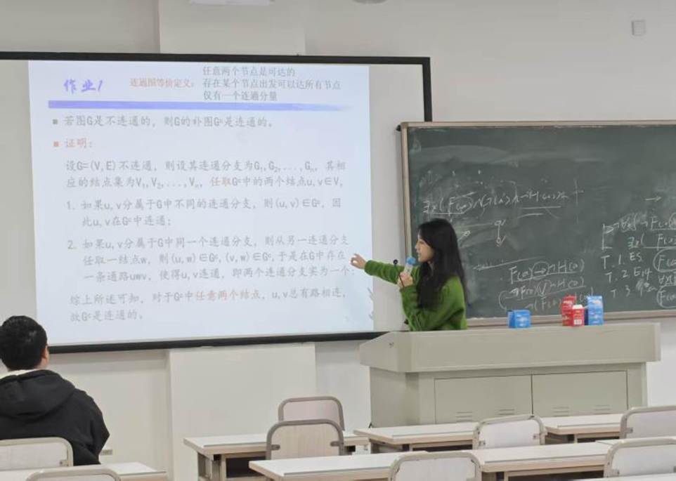 同日下午,信安2402班刘佳颖同学依次开展两场辅导,离散数学课堂上她拆解复杂知识点、梳理考点脉络,计算机组成原理信安专题课则是融合硬件架构与信息安全知识,讲解存储、I/O保护机制及硬件加密加速相关内容,凸显专业特色。