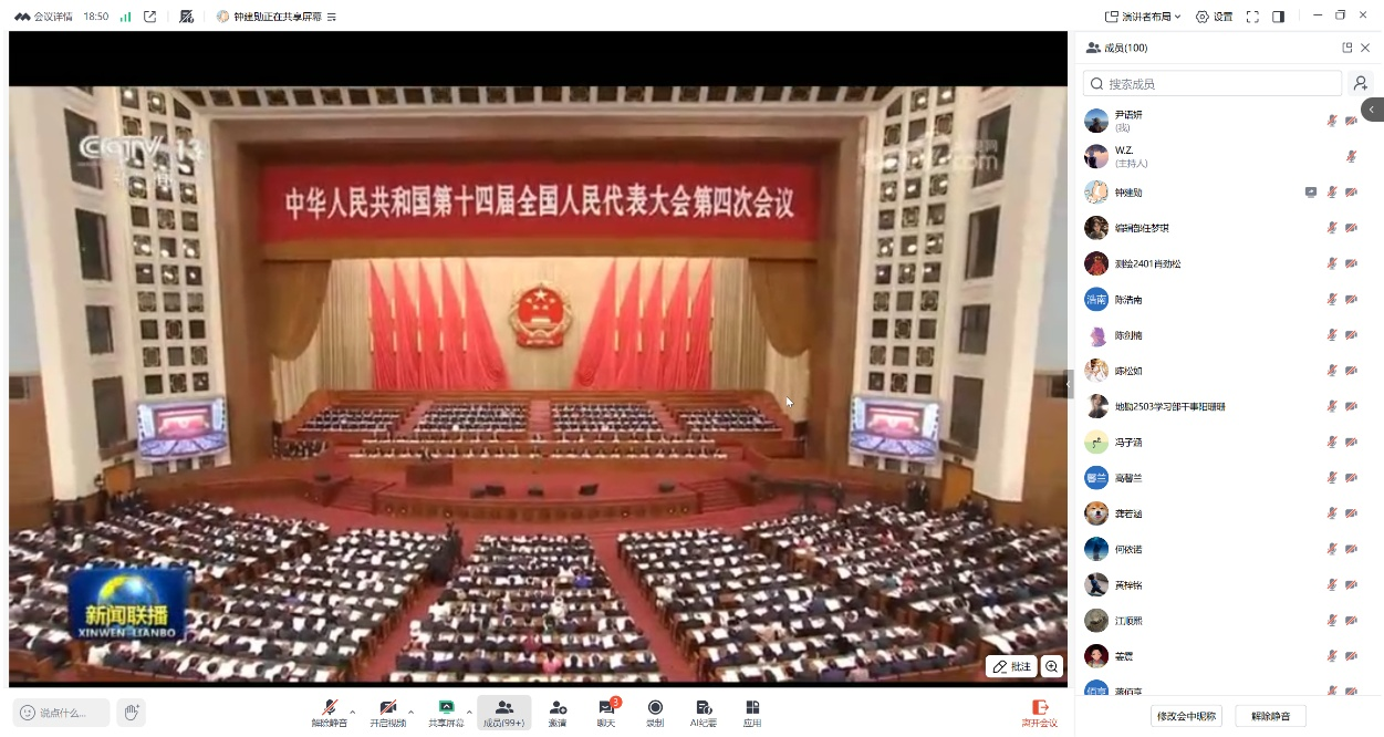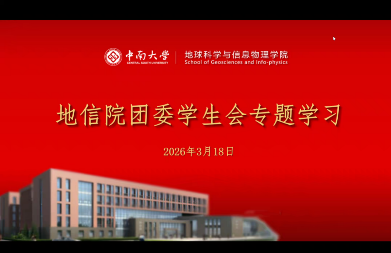 为深入学习贯彻全国两会精神,切实提升学生干部的政治理论素养,3月18日中午,中南大学地球科学与信息物理学院团委学生会以线上形式开展理论学习活动,集中学习十四届全国人大四次会议第二次全体会议相关视频内容。学院团委学生会全体成员按时参会,共同领会会议精神,凝聚奋进力量。