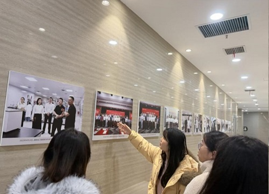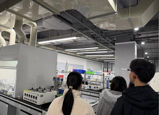 在晶易医药相关负责人的陪同下,同学们依次参观了企业文化长廊、研发中心、分析实验室及现代化办公区,实地感受医药科技企业严谨规范的科研环境与充满活力的文化氛围。参观过程中,相关负责人紧密结合公共卫生与预防医学的专业特点,围绕企业在临床试验管理、药品安全监测及质量体系建设等方面的创新成果与行业标准,进行了全面而生动的讲解。同学们认真聆听、踊跃提问,在沉浸式的产业场景中,对公共卫生学科在医药产业端的转化应用形成了更为直观而深刻的认识。