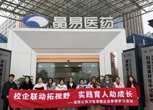 为深化产教融合,拓宽学生专业视野,提升实践育人成效,2026年3月24日,湘雅公共卫生学院团委组织本科生赴湖南晶易医药科技股份公司开展参观学习活动。本次活动以“校企联动拓视野,实践育人助成长”为主题,让同学们近距离感受医药科技企业的创新活力与发展脉动,搭建起学院与企业协同育人的新桥梁。