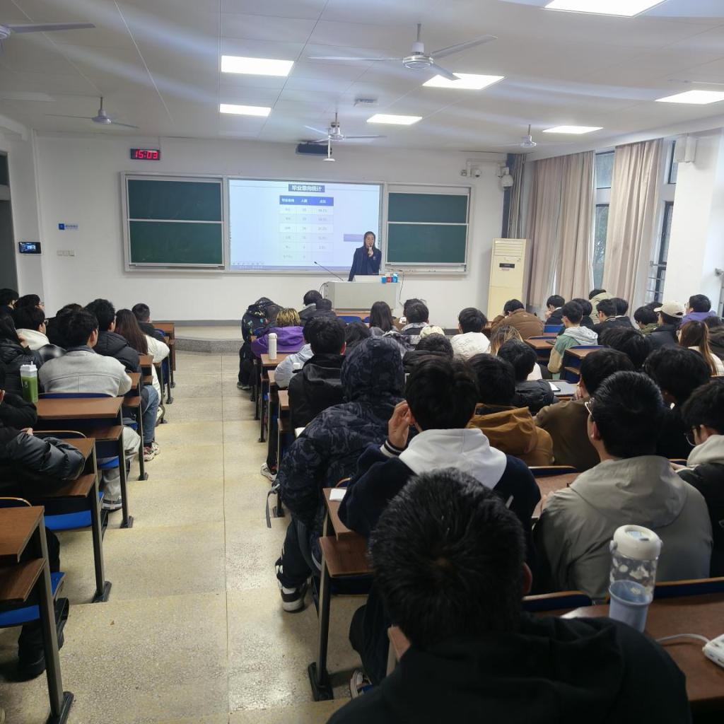 在毕业意向与就业实习指导环节,姜雨辰细致梳理了学生毕业意向统计结果,针对考研、就业、保研等不同发展路径给出针对性建议。她指出,当前考研形势严峻,同学们需科学规划备考节奏;就业方向的同学要提前准备简历,主动投递岗位、参与面试,保持每周更新求职动态的习惯,目前招聘信息涵盖多家优质企业,为同学们提供了便捷的求职信息渠道。