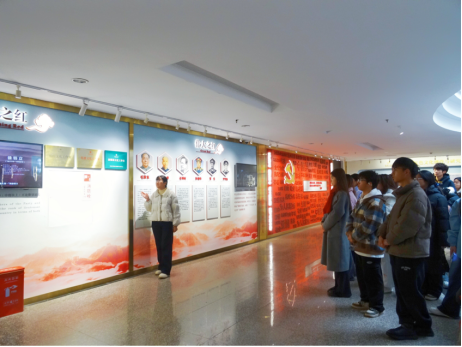步入展厅,在讲解员的细致讲解与引导下,同学们循着历史的足迹,沉浸式感悟红色文化的深厚底蕴与时代意义。展厅以梦想、求索、执着、初心、热血、信念、大爱、担当、奉献、荣光十大主题为脉络,展现共和国英雄的光辉事迹与崇高精神风骨。一段段波澜壮阔的革命历程、一个个鲜活立体的英雄形象,让同学们驻足聆听,在历史回响与现实感悟的交融中,深切体会信仰的力量与使命的重量,心灵受到深刻触动与精神鼓舞。