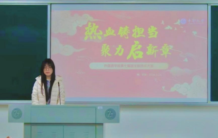 2026年3月25日下午16:00,外国语学院第七届团支部风采大赛在外语楼602教室圆满落幕。本次大赛以“热血铸担当,聚力启新章”为主题,学院团委书记李雅丽及2023级、2024级全体团支书共同参加此次活动。