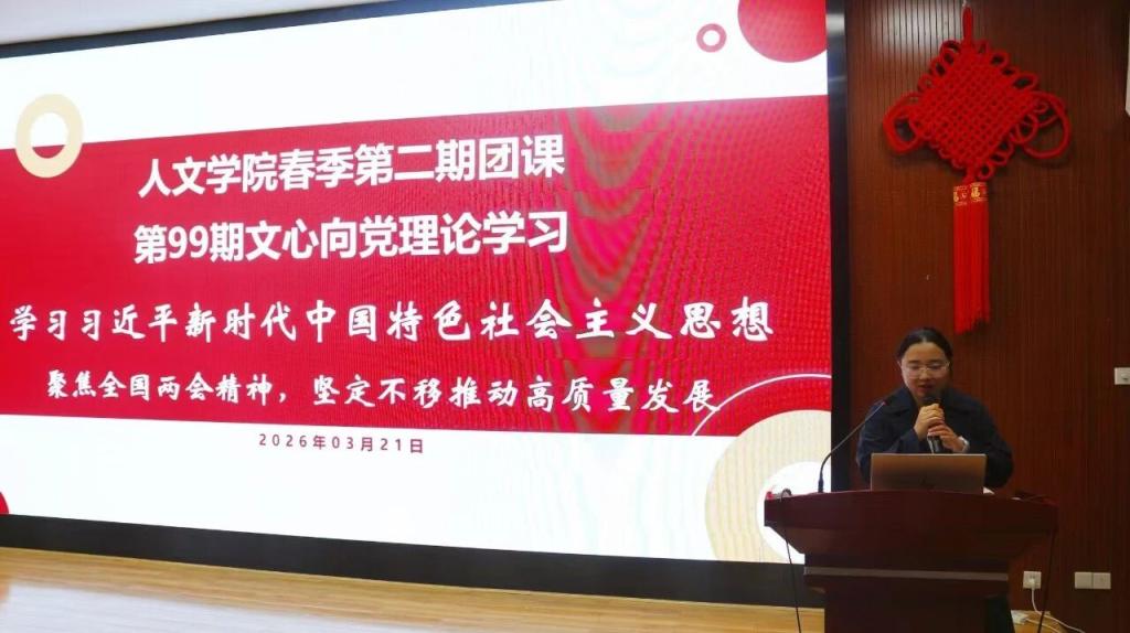 为深入学习贯彻2026年全国两会精神,准确把握高质量发展、新质生产力、科技创新与青年发展等重要部署,3月21日下午,中南大学人文学院团委、学生会理论学习专题会议在学院顺利召开。本次会议以学习贯彻全国两会精神为主题,聚焦高质量发展、新质生产力、科技创新、人工智能发展等重要内容,由人文学院团委书记杨紫金老师主讲,人文学院团委、学生会全体成员参加学习。