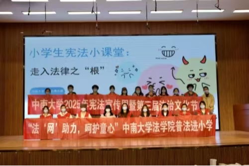随着快门按下,合影留念完成,活动至此圆满画下句号。此次活动的成功举办,不仅帮助心助会成员们提升了自身的宣讲能力与社会实践能力,也帮助中南大学附属小学三年级的同学们走近宪法,引导他们养成健康、文明、理性的上网习惯,成为宪法的忠实遵守者与坚定捍卫者。未来,法学院心助会将继续开展更多的法律宣传活动,不断为法治社会、法治中国建设注入力量。