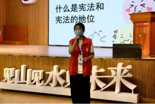 在活动开始前,心助会成员们与志愿者一同向全体同学发放了宪法宣传册,以帮助同学们更加清晰直观地了解宪法知识。