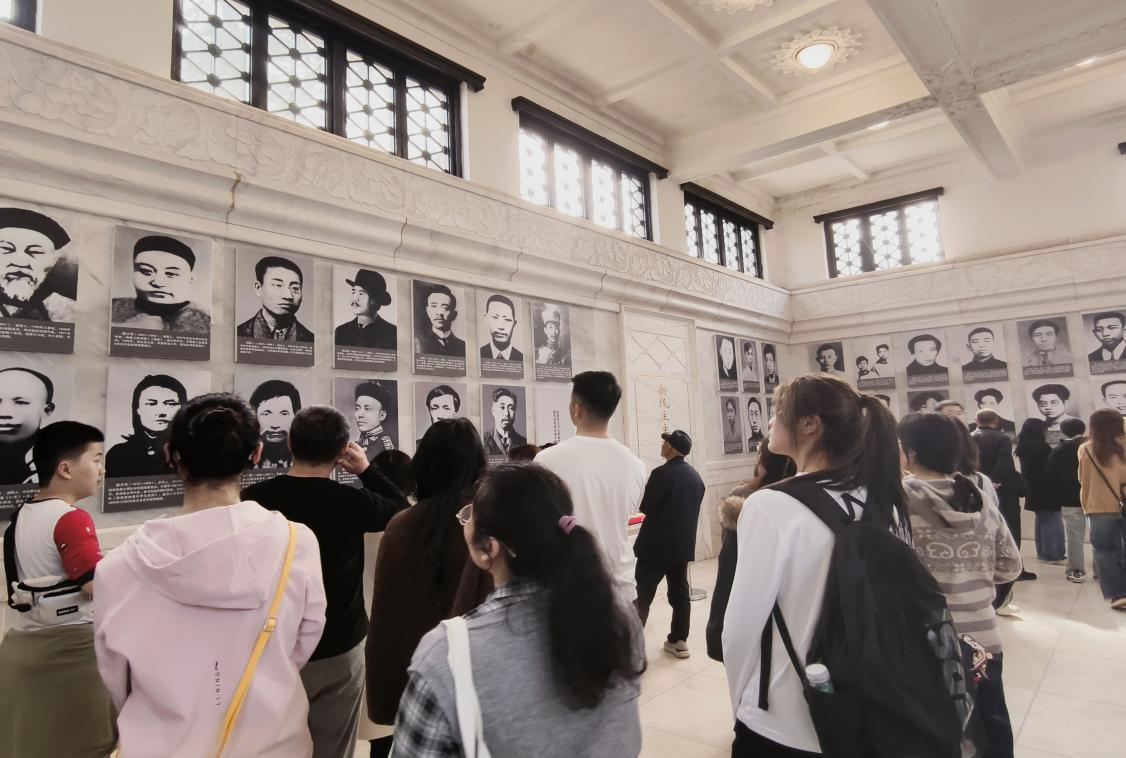 仪式结束后,全体人员有序进入湖南烈士纪念塔内参观学习。在塔内陈列室里,历史图片、文献资料与实物展品静静铺展,庄重记述着湖湘儿女为民族独立、人民解放事业前赴后继、舍生取义的壮阔历程。同学们驻足凝视、认真研读,深入了解157位湘籍烈士的英勇事迹,在感悟英雄壮举中砥砺初心使命。