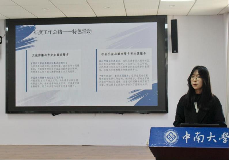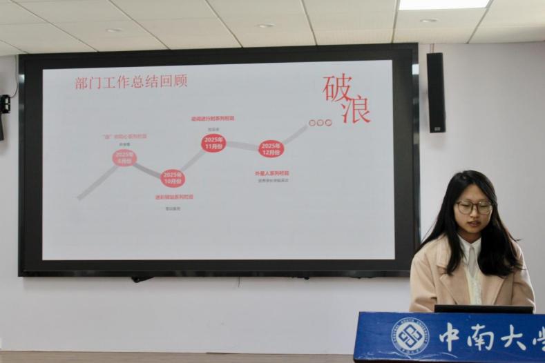 文艺部李钰程汇报了上学期部门工作亮点,重点介绍了“志趣坊”活动开展情况,以及部门在营造学院活泼多元、积极向上文化氛围中发挥的重要作用。