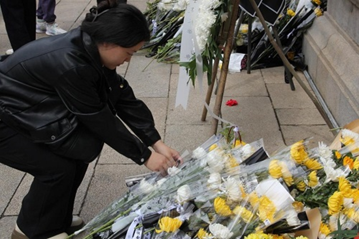 随后,全体成员肃立于烈士纪念塔前,由院国歌领唱团领唱,齐声高唱中华人民共和国国歌,以激昂旋律致敬不朽英魂。唱毕,全体成员低头默哀一分钟,在静默中追思先烈的丰功伟绩,寄托无尽哀思。默哀结束后,同学们依次上前,向烈士纪念塔敬献鲜花,以一束白菊寄寓万千哀思,表达对革命先烈的崇高敬意。
