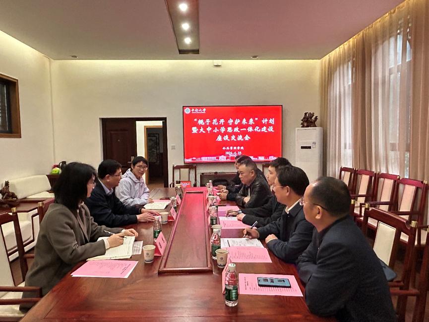 4月15日上午10时,中南大学公共管理学院与喻家坳乡人民政府、宁乡一中白马桥中学、喻家坳中学在天心校区公管楼106室召开“栀子花开 守护未来”计划暨大中小学思政一体化建设座谈交流会。喻家坳乡党委委员、宣传部长欧阳步云,宁乡一中白马桥中学党总支书记、校长彭海军,业务副校长王立山,德育副校长胡龙武,喻家坳中学党总支书记、校长喻继星,德育副校长潘衡等一行来院交流。我院党委副书记耿贵斌,公管系副教授、团委副书记雷望红,辅导员、团委书记梁慧共同出席,共商校地协同推进大中小学思政教育一体化新路径。会议由梁慧主持。