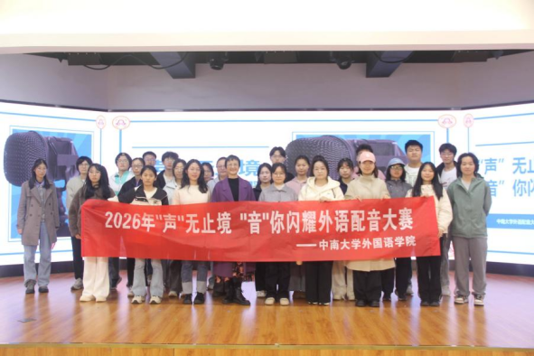 2026年4月22日15:30,由中南大学外国语学院举办的“‘声’无止境,‘音’你闪耀”外语配音大赛于潇湘校区毓秀楼411演播室顺利举行。