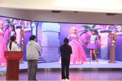 西班牙语2401班张子微、赵轶聪、原晓涵、葛瑾蓉、赵硕、康文杰用西班牙语为《小马宝莉》注入鲜活生命力,生动还原了小马们的纯真与善良;英语2502 陈红、段雅文演绎英语版《公主日记》,用细腻的演绎,诠释出角色从平凡走向不凡的成长蜕变。