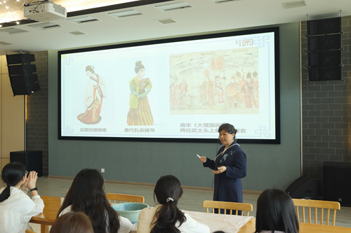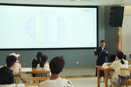 活动伊始,传承人拆解了扎染制作的全流程,从天然染料提取、捆扎缝纫技法,到传统纹样的文化寓意,讲述了这门技艺在苍山洱海间的传承故事,指尖操作让师生直观感受到传统工艺的温度。