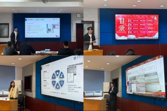 答辩活动现场,各候选班级代表依次上台,围绕班级和团支部建设情况进行汇报。汇报内容丰富翔实,展现了各班在思想建设上的引领力、学业互助上的凝聚力、实践服务上的行动力与班风建设上的向心力,彰显了新时代青年班集体、团支部的昂扬风貌。