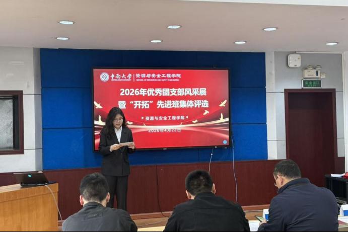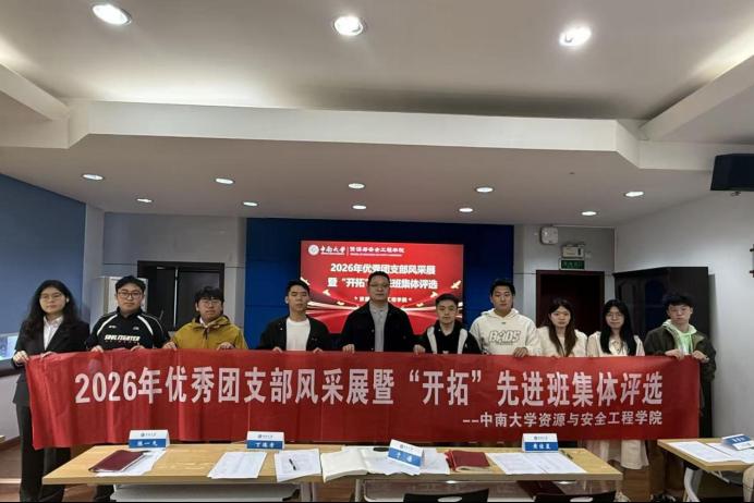 为进一步强化基层团组织建设,发挥优秀团支部与先进班集体的示范引领作用,营造争先创优的优良班风学风,4月22日下午,资源与安全工程学院于岳麓山校区采矿楼224顺利开展2026年优秀团支部风采展暨“开拓”先进班集体评选活动。活动邀请了各年级辅导员、班导师代表、团委指导老师、学生代表等担任评委,来自学院各专业、各年级的11个班级代表参加评选。本次活动由团委组织部斯琴高娃主持。