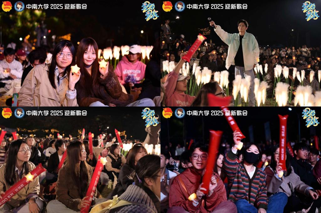 当《向阳而生》的合唱响起,爱在此刻汇流。中南学子们用爱点亮夜晚,爱歌声的灿烂、爱陪伴身边的亲人好友、爱永不放弃的自己,更爱中南大家庭。这一夜,星光为幕,草坪为席,歌声作伴,“爱你爱我”不只是这场歌会的主题,更是每个中南人心底的共鸣。