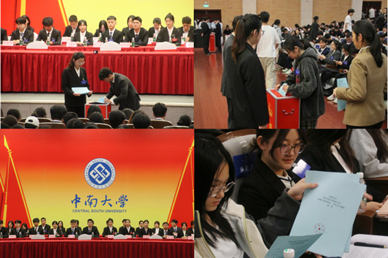会议选举产生了新一届学生会、研究生会常任代表和学生会、研究生会主席团成员。王广霖、王一彤等50名同学当选第十届学生会、研究生会常任代表,赵子凯、宋子泱、方毅、谭覃、余湘缘5名同学当选中南大学第十届学生会主席团成员,田一茜、林琳、刘泱泱、董玉锋、黄康5名同学当选中南大学第十届研究生会主席团成员。大会审议通过了关于学生会、研究生会工作报告的决议(草案)和中南大学学生会、研究生会章程修正案(草案)。