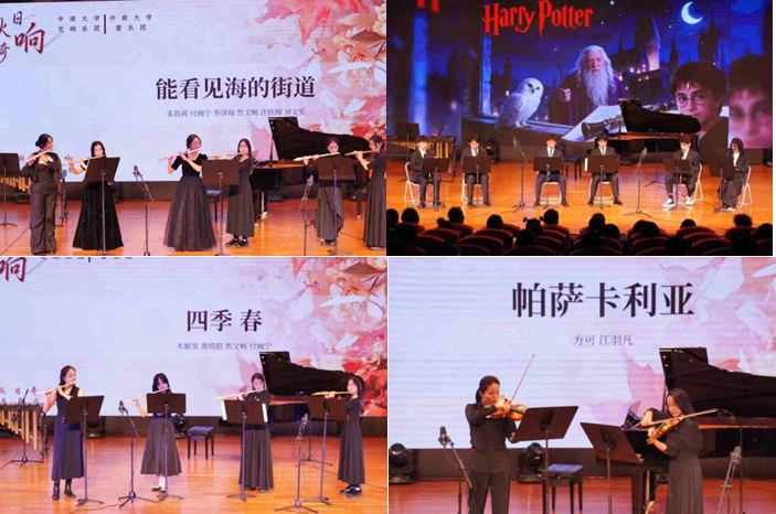 音乐会在长笛重奏《能看见海的街道》中温馨开启,古典作品《帕萨卡利亚》《肖斯塔科维奇五首小提琴二重奏》《四季·春》在声部的对话中呈现出理性与情感的深度交织;《海德薇变奏曲》《Bibbidi-Bobbidi-Boo》《永远同在》《植物大战僵尸》等经典影视游戏配乐作品深受在场观众喜爱。值得关注的是,本场演出中众多2025级新生首次登台,他们将对音乐的热爱投入艺术实践,以多种乐器搭配碰撞出多元化的艺术火花,是同学们从课堂走向舞台、从个体融入集体的成长缩影。