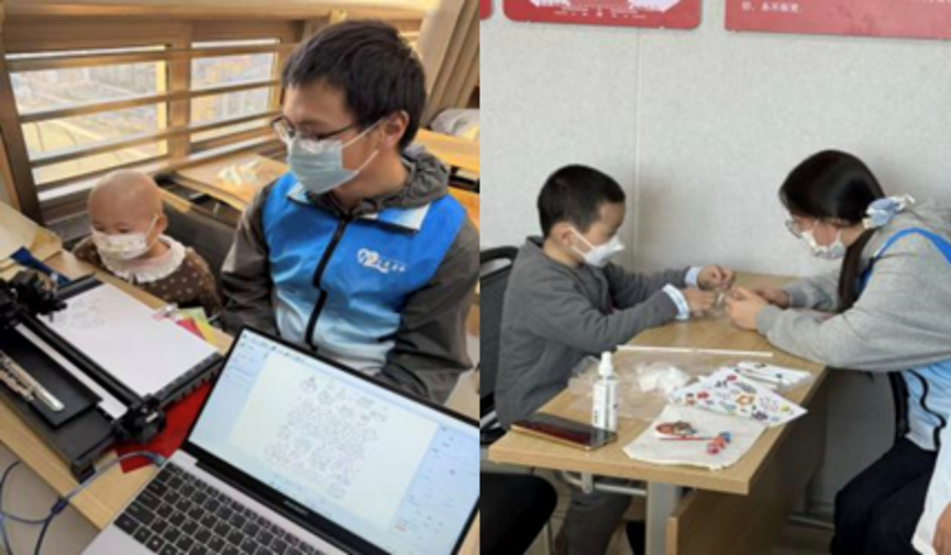 活动尾声,孩子们兴奋地展示自己的作品,互相分享制作过程中的趣事,现场氛围十分温馨。一位家长感动地说道:“孩子住院后一直情绪低落,今天的活动让他特别开心,既动手体验了手工乐趣,又感受到了来自社会的温暖,非常有意义。”志愿者们也通过此次活动更加深刻地体会到奉献与陪伴的价值,进一步坚定了以青春力量传递温暖的信念。
